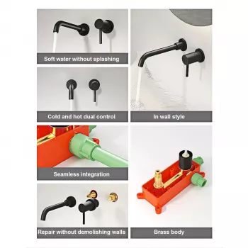 Modern Black Wall-Mounted Bathroom Faucet with Sleek Brass Design